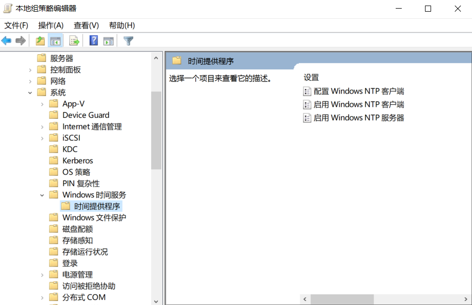 点击“管理模板” --》点击“系统”--》点击“windows时间服务” --》点击“时间提供程序”