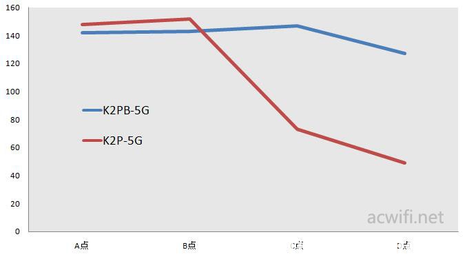 A点位置,第一次遇见这样吻合的信号强度对比。近距离下,两者无线信号强度一样;